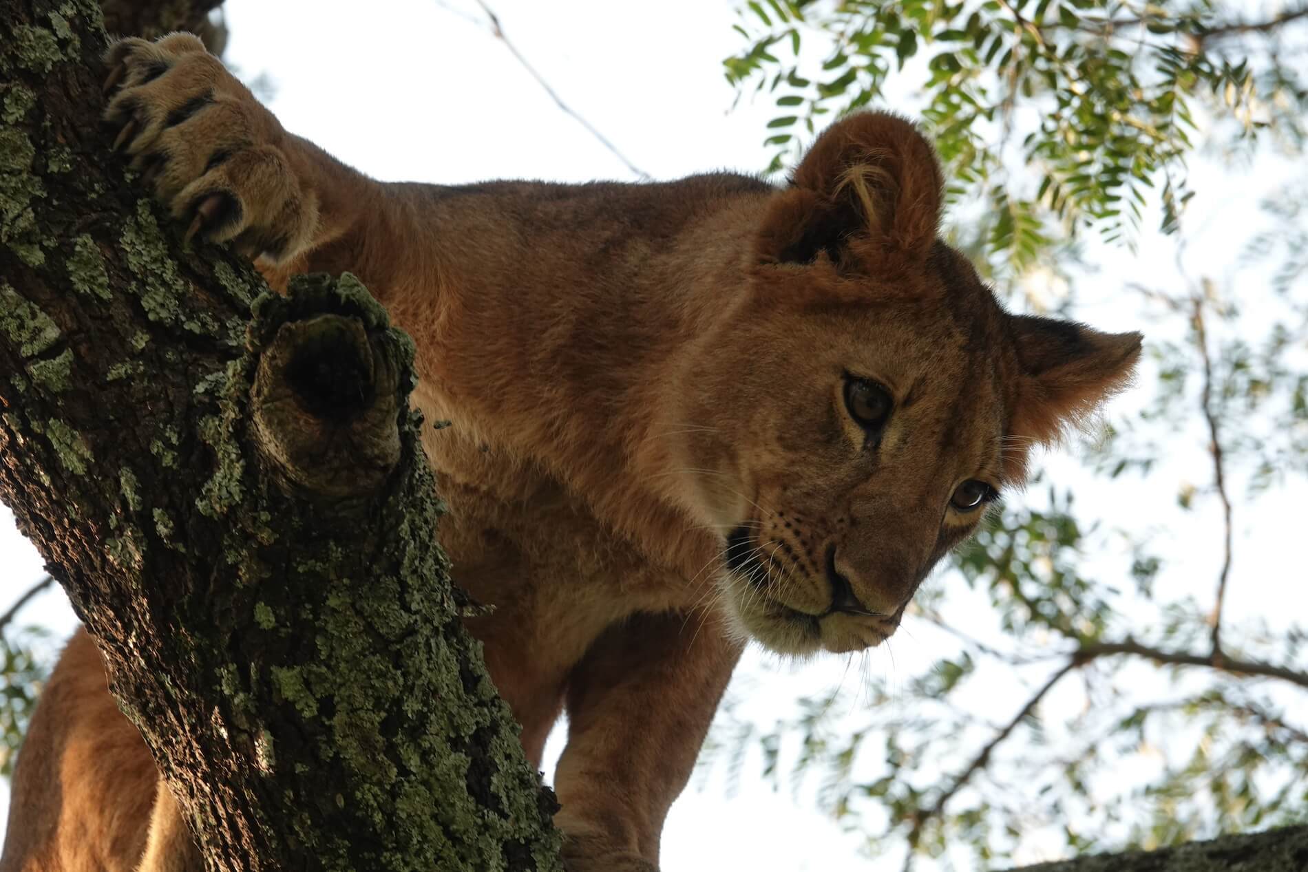 Het Queen Elizabeth National Park oogt wat ruiger dan Murchison. Ook daar prachtige vergezichten en veel dieren om te zien. Tijdens de leeuwen trekking mochten we van de paden af ‘op jacht’ naar luipaarden en leeuwen. Met behulp van de lokale rangers konden we deze schitterende dieren van super dichtbij mee maken. In Ishasha Sector zagen we een hele familie leeuwen met jongen een boom in klimmen, recht boven onze jeep!